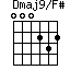 F#m7 = x44220 Dmaj9/F# = 200220 D/F# = 20023x Gm = 355333